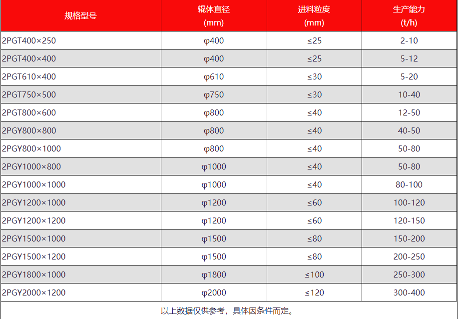 大型對(duì)輥式破碎機(jī)規(guī)格型號(hào):